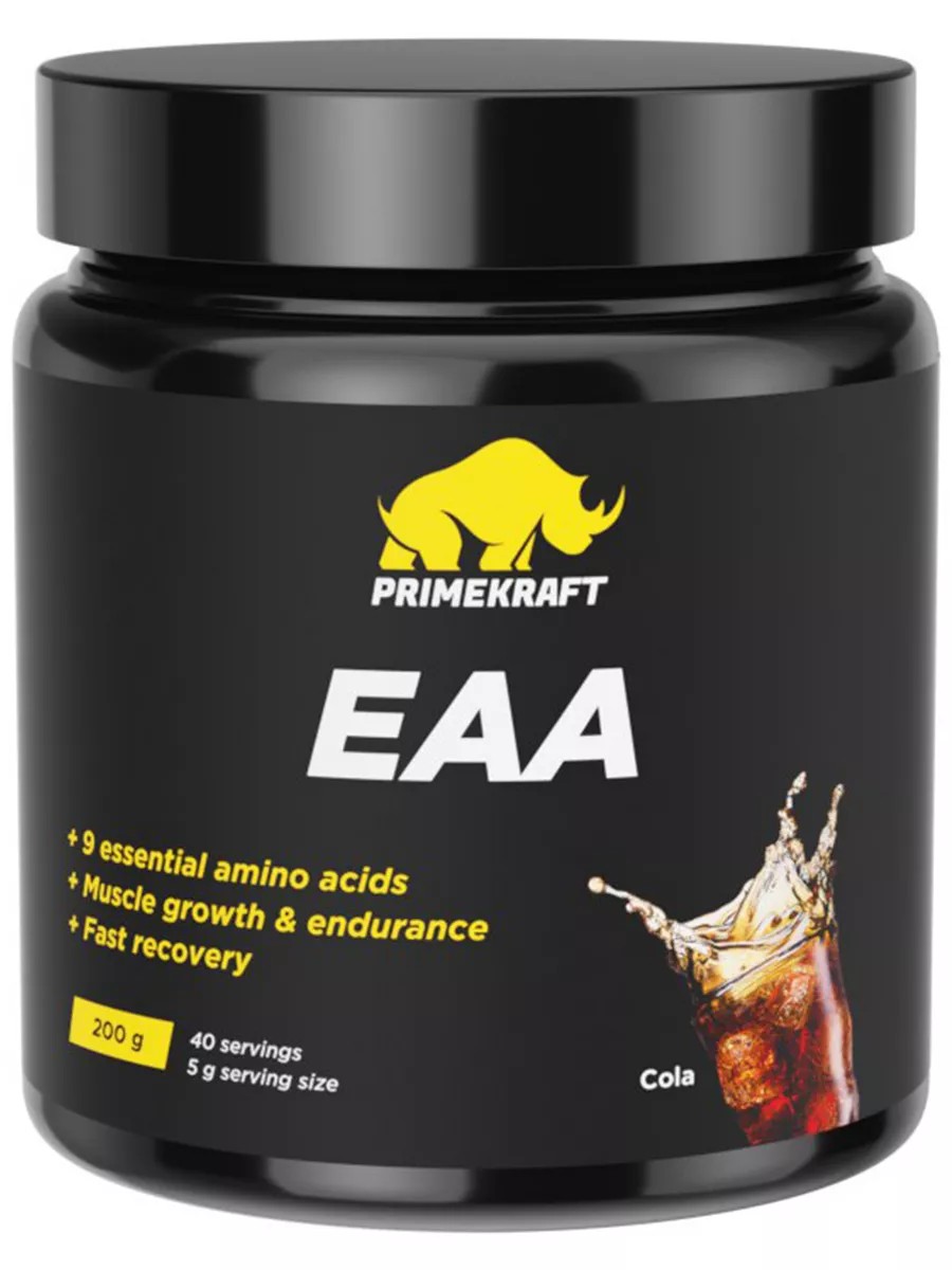 A supplement based on 9 essential amino acids. They play a key role in muscle recovery and growth, stimulate protein synthesis, prevent its breakdown, and also promote accelerated muscle regeneration after intense training. The main component of the supplement is BCAA amino acids. They are especially important for the body during high loads and cannot be produced independently. BCAAs help become stronger and more resilient, and prevent muscle breakdown. In addition to BCAAs, the supplement also contains other essential amino acids: 1. Histidine - participates in the synthesis of hemoglobin and improves blood circulation. 2. Lysine - necessary for muscle growth and recovery. 3. Methionine - plays an important role in metabolism and detoxification of the body. 4. Phenylalanine - a precursor of norepinephrine, enhances energy metabolism. 5. Threonine - supports immunity and is involved in collagen synthesis. 6. Tryptophan - regulates mood and promotes good sleep. The complex action of Prime Kraft EAA in combination with physical activity helps to recover after training, maintain optimal energy balance, be stronger and more enduring. Application: dissolve 5 g of the supplement in 300 ml of water. Take 1 serving per day. Composition in a 5 g serving: Energy value - 17.5 kcal, Protein - 2.9 g, Fat - 0 g, Carbohydrates - 1.4 g. Amino acid profile: L-Valine - 435 mg, L-Histidine hydrochloride - 246 mg, L-Isoleucine - 340 mg, L-Leucine - 737 mg, L-Lysine hydrochloride - 680 mg, L-Methionine - 340 mg, L-Threonine - 359 mg, L-Tryptophan - 95 mg, L-Phenylalanine - 586 mg. Ingredients: EAA (L-leucine, L-lysine hydrochloride, L-phenylalanine, L-valine, L-threonine, L-isoleucine, L-methionine, L-histidine hydrochloride, L-tryptophan, sunflower lecithin), flavoring, acidity regulator (citric acid), color (caramel color), sweetener (sucralose). Network of stores for health, sports and beauty "A-Food".
