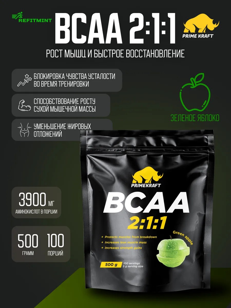 Full product namePRIMEKRAFT BCAA 2:1:1 Amino Acids (BCAA), Green Apple, 500 g / 100 servings