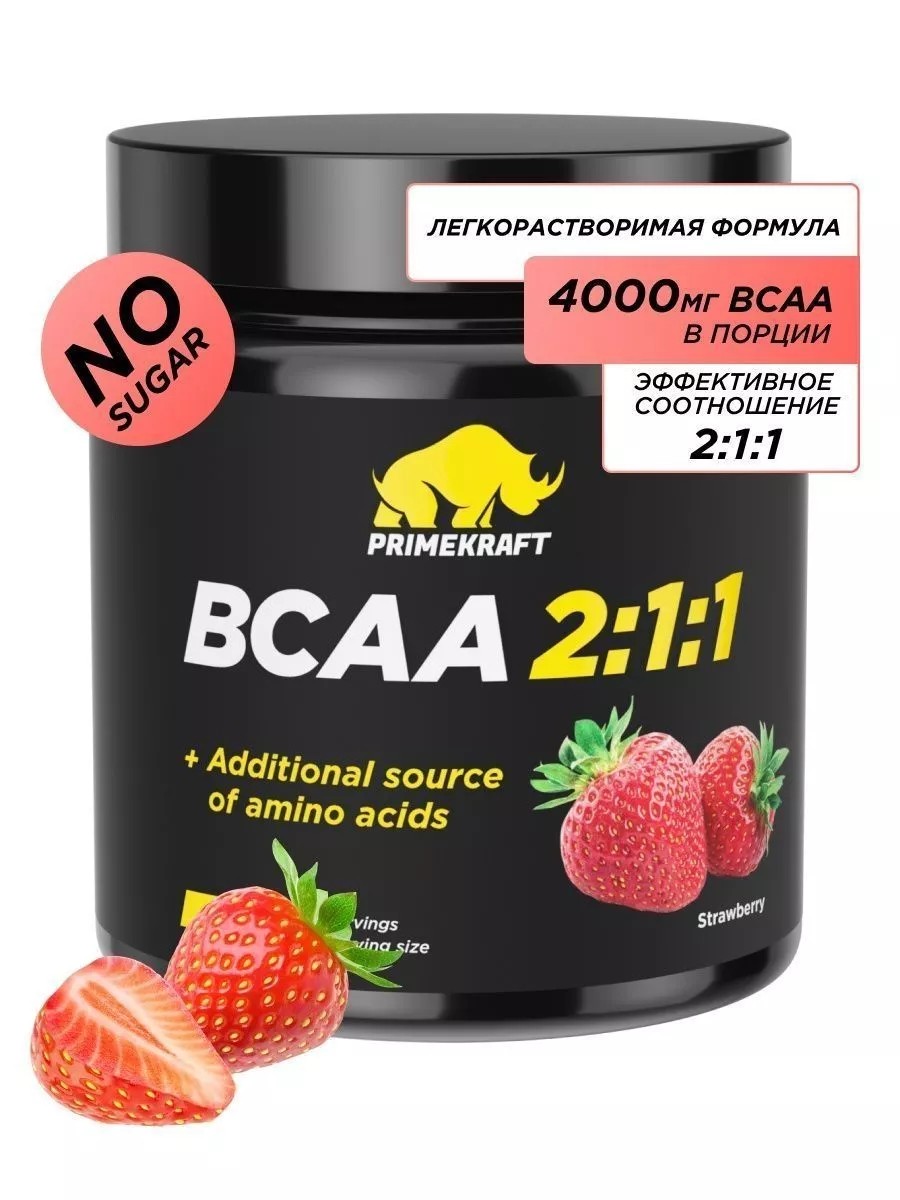 BCAA 2 1 1 спортивное питание аминокислоты, клубника, 150г