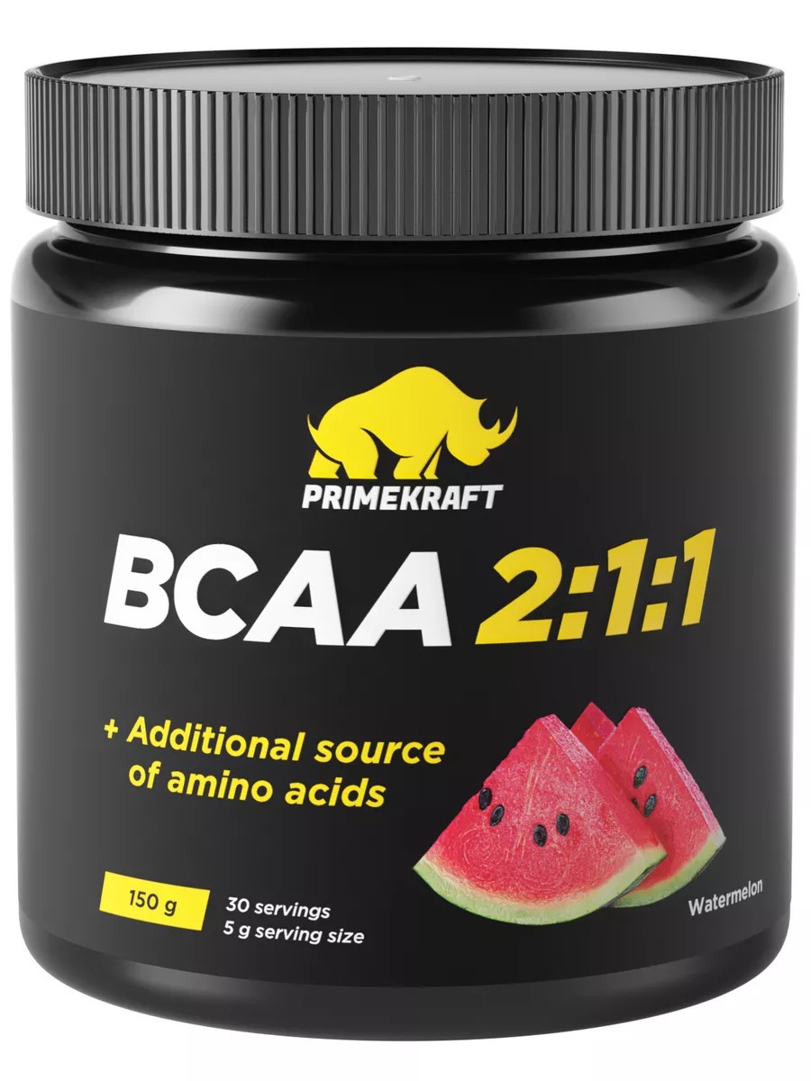 Аминокислотный комплекс BCAA 2-1-1 от Prime Kraft – смесь незаменимых аминокислот L-лейцина, L-изолейцина и L-валина в соотношении 2:1:1, признанным наиболее эффективным для спортсменов. Преимущества: разнообразные приятные вкусы; быстрорастворимая формула Instant; без сахара. Для чего используется? Комплекс незаменимых аминокислот повышает эффективность диет и тренировок в периоды коррекции массы тела, ускоряет процессы восстановления мышечных волокон после тренировки, увеличивает выносливость и стимулирует обменные процессы в организме. Восполняет энергетические ресурсы. Незаменимые аминокислоты не вырабатываются организмом человека, поэтому их необходимо получать из пищи или добавок. Применение: Для набора массы: 1 порцию – 5 грамм (одна мерная ложка) смешивайте с 250-230 мл воды или другого напитка (в зависимости от вкусовых предпочтений), перед тренировкой – и 1 порцию после. Для похудения: 1 порция с 250-300 мл воды, с утра натощак и 1-2 раза в день между едой. Для поддержания в тонусе: 1 порция с 250-300 мл воды, лучше в первой половине дня. Состав в порции 5 г: Энергетическая ценность - 3 кКал, Углеводы - 0.7 г, Л-Лейцин - 1900 мг, Л-Валин - 1000 мг, Л-Изолейцин - 1000 мг. Другие ингредиенты: регулятор кислотности (лимонная кислота), ароматизатор, краситель (свекольный красный), подсластитель (сукралоза). Сеть магазинов для здоровья, спорта и красоты "Атлетик Фуд".