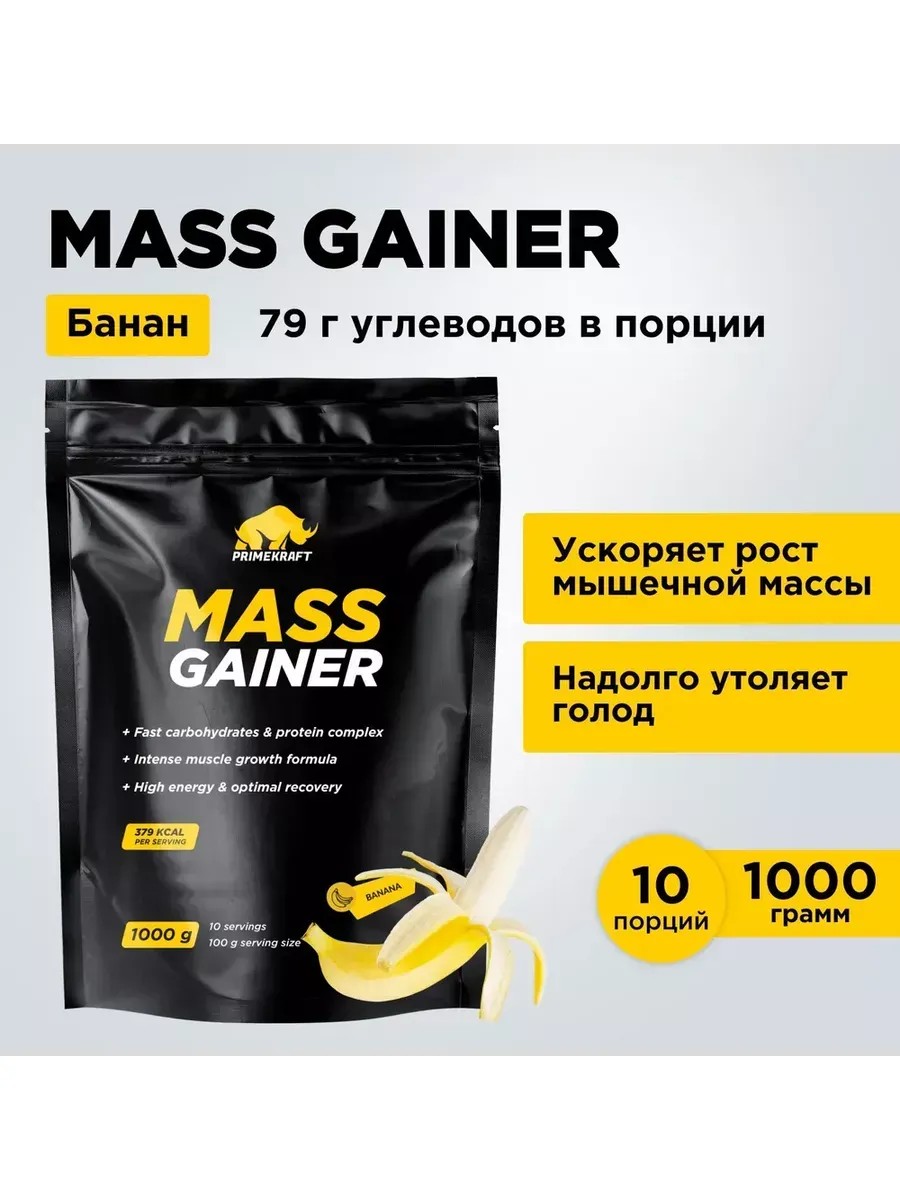 Prime Kraft Гейнер MASS GAINER белково-углеводный Банан (дой-пак 1кг)