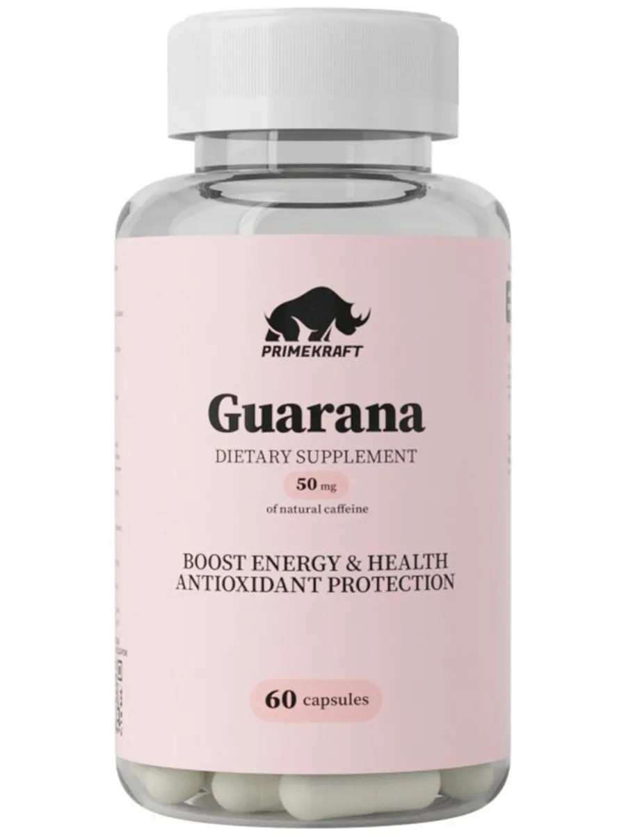 An effective sports supplement from Prime Craft for increasing workout intensity and duration by boosting endurance. It stimulates accelerated fat burning during a cutting phase. Recommended for overall tone and well-being. How does it work? 1. It provides additional energy, increases endurance, and provides a significant boost of strength. 2. The caffeine contained in guarana has a slow-acting effect on the body. The supplement contains tannins, which are broken down at a slow rate, ensuring the effect lasts for 4-6 hours. 3. Taking the supplement provides a gentle energizing effect without causing side effects such as overexcitement, insomnia, or increased heart rate. 4. Unlike other forms of caffeine, it does not irritate the mucous membranes of the stomach and intestines. In addition, guarana strengthens the walls of the gastrointestinal tract and fights harmful bacteria in the intestines. 5. An effective remedy for chronic fatigue syndrome. 6. Promotes fat burning. Reduces appetite, prevents fatigue during workouts, stimulating increased calorie expenditure, accelerates metabolism. 7. Improves mood, concentration and overall well-being throughout the day. 8. Normalizes the cardiovascular system, cleansing the walls of blood vessels from fatty plaques. Suggested Use: Take 1 capsule daily with meals or 30 minutes before training, as needed. Composition in 1 capsule: Caffeine - 50 mg. Ingredients: guarana seed extract, microcrystalline cellulose (filler), gelatin (capsule), magnesium stearate (anti-caking agent), silicon dioxide (anti-caking agent). Contraindications: individual intolerance to the components, pregnancy, breastfeeding, increased nervous excitability, insomnia, arterial hypertension, irregular heartbeat. Prime Kraft. A-Food, a chain of stores offering health, sports, and beauty products.