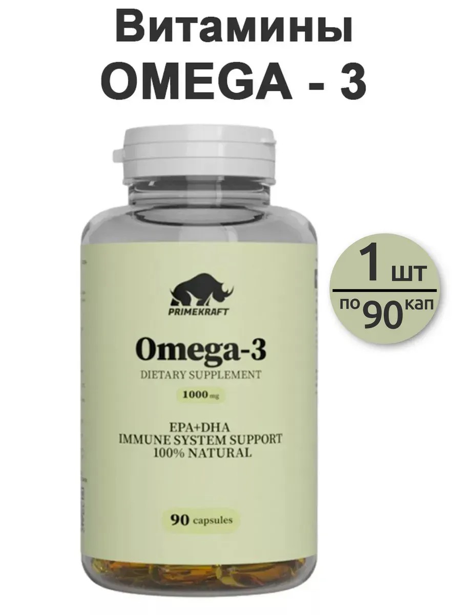 PRIME KRAFT ОМЕГА-3 1000 - Биологически активная добавка (БАД) к пище - Омега-3 - полиненасыщенные жирные кислоты (основные из них - декозагексаеновая (ДГК), эйкозапентаеновая (ЭПК) и альфа-линоленовая (АЛК)), способные синтезироваться в организме, но в очень маленьком количестве (не более 5% от потребности организма). Поэтому важно, чтобы кислоты Омега-3 обязательно поступали к нам с пищей и в виде добавок.