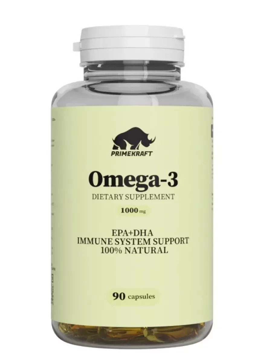 Prime Kraft Omega-3 1000 capsules (1350 mg) is a dietary supplement containing Omega-3 - polyunsaturated fatty acids (the main ones are docosahexaenoic acid (DHA), eicosapentaenoic acid (EPA), and alpha-linolenic acid (ALA)), which can be synthesized in the body, but only in very small quantities (no more than 5% of the body's requirements). Therefore, it is important to get Omega-3 acids from food and supplements. They help strengthen the immune system, lower cholesterol levels, improve vascular elasticity, and reduce the risk of cardiovascular disease. Adults are recommended to take 1 capsule 3 times daily with meals. Duration of treatment is 1 month.