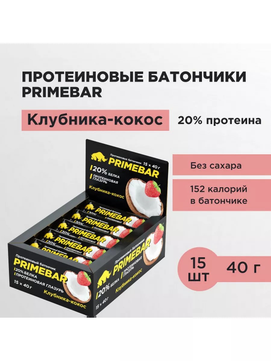 Протеиновый батончик PRIMEBAR - Клубника кокос 15 шт по 40гр