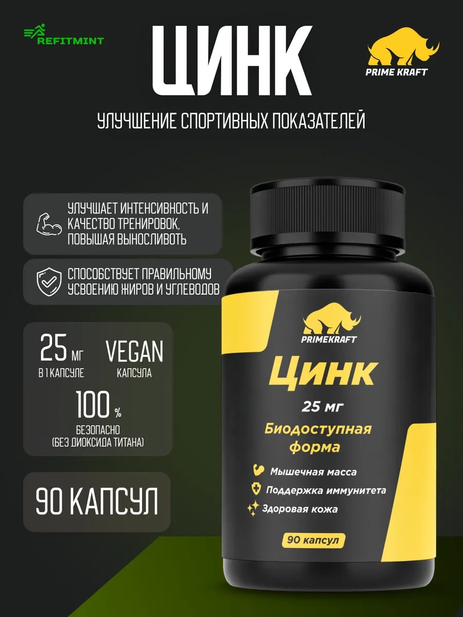 Prime Kraft Цинк Zinc 25 mg 90 капсул