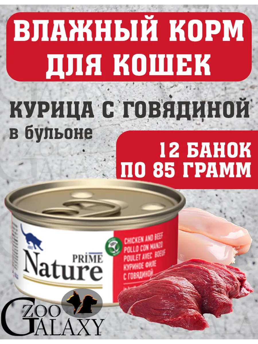 Корм NATURE для кошек курица и говядина в бульоне 12х85 г