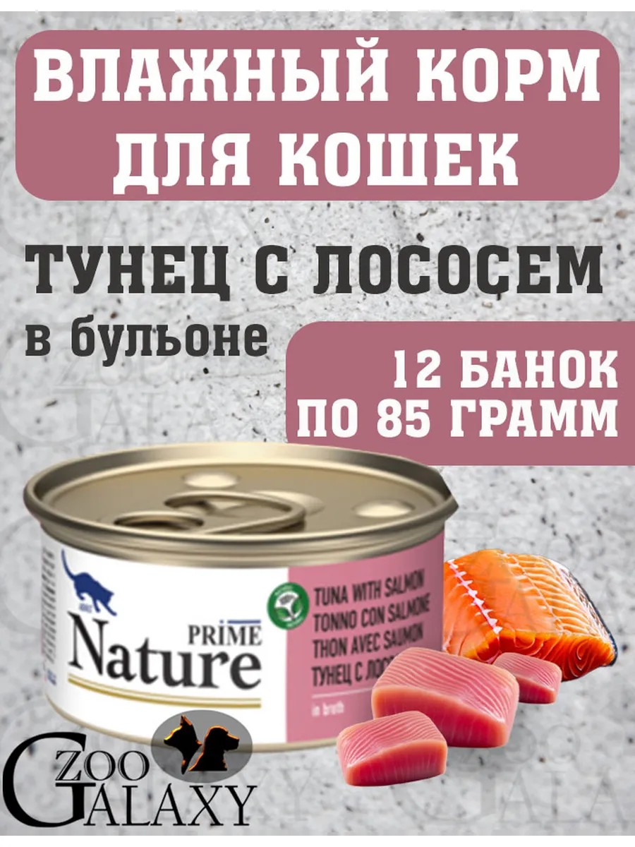 Корм NATURE для кошек тунец и лосось в бульоне 12х85 г