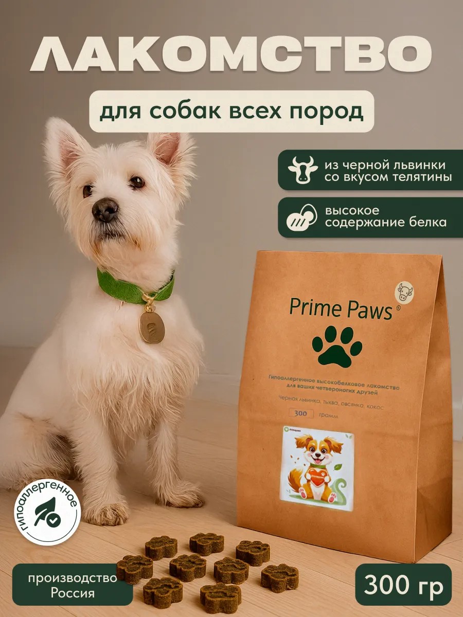 Prime Paws Лакомства для собак со вкусом телятины 300г