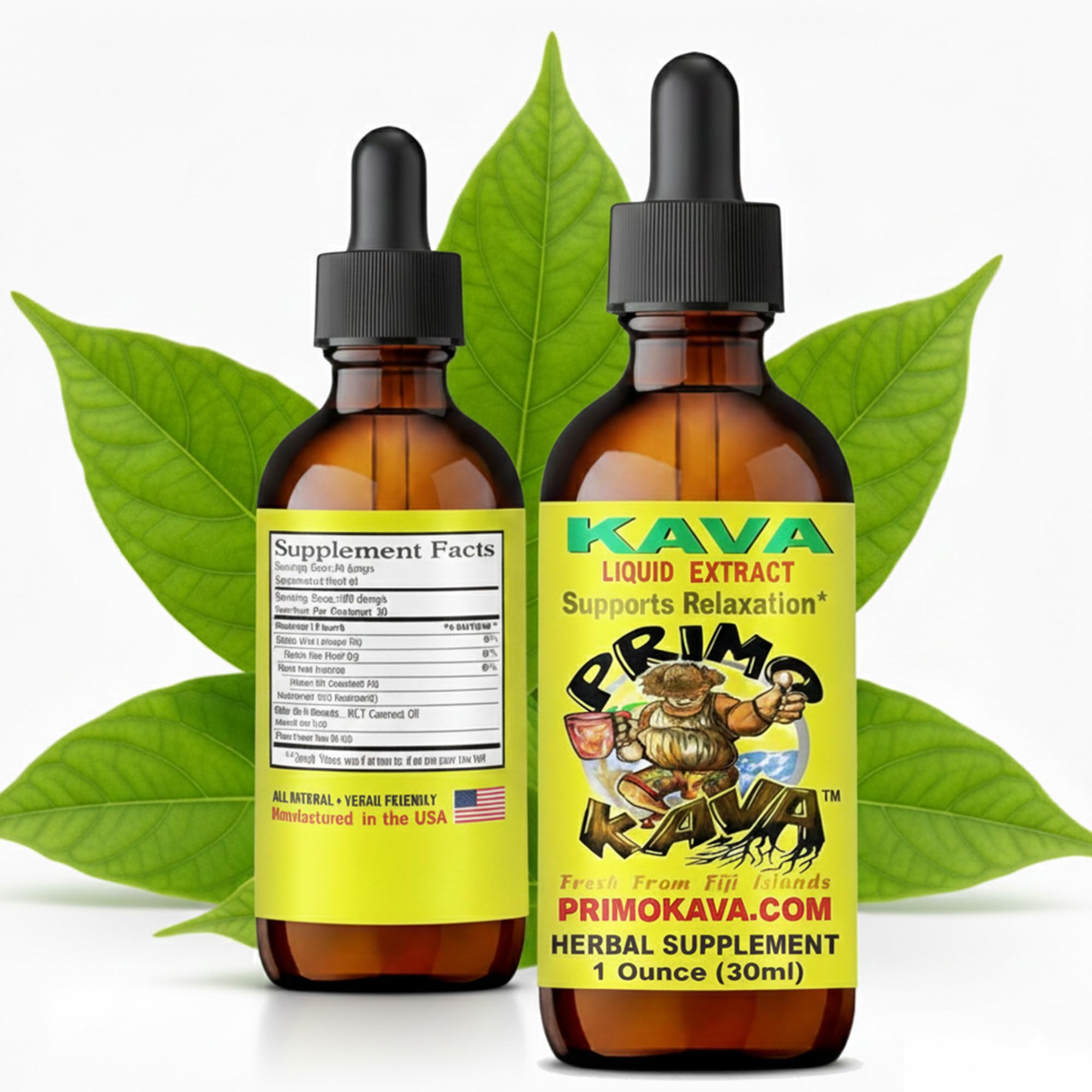 PRIMO KAVA Drops | Natural Kava from Fiji | Fast Acting Kava Root Extract for Calming & Relaxation | 50 mg Potent Kavalactones | Certified 3rd Party Testing | 1 oz