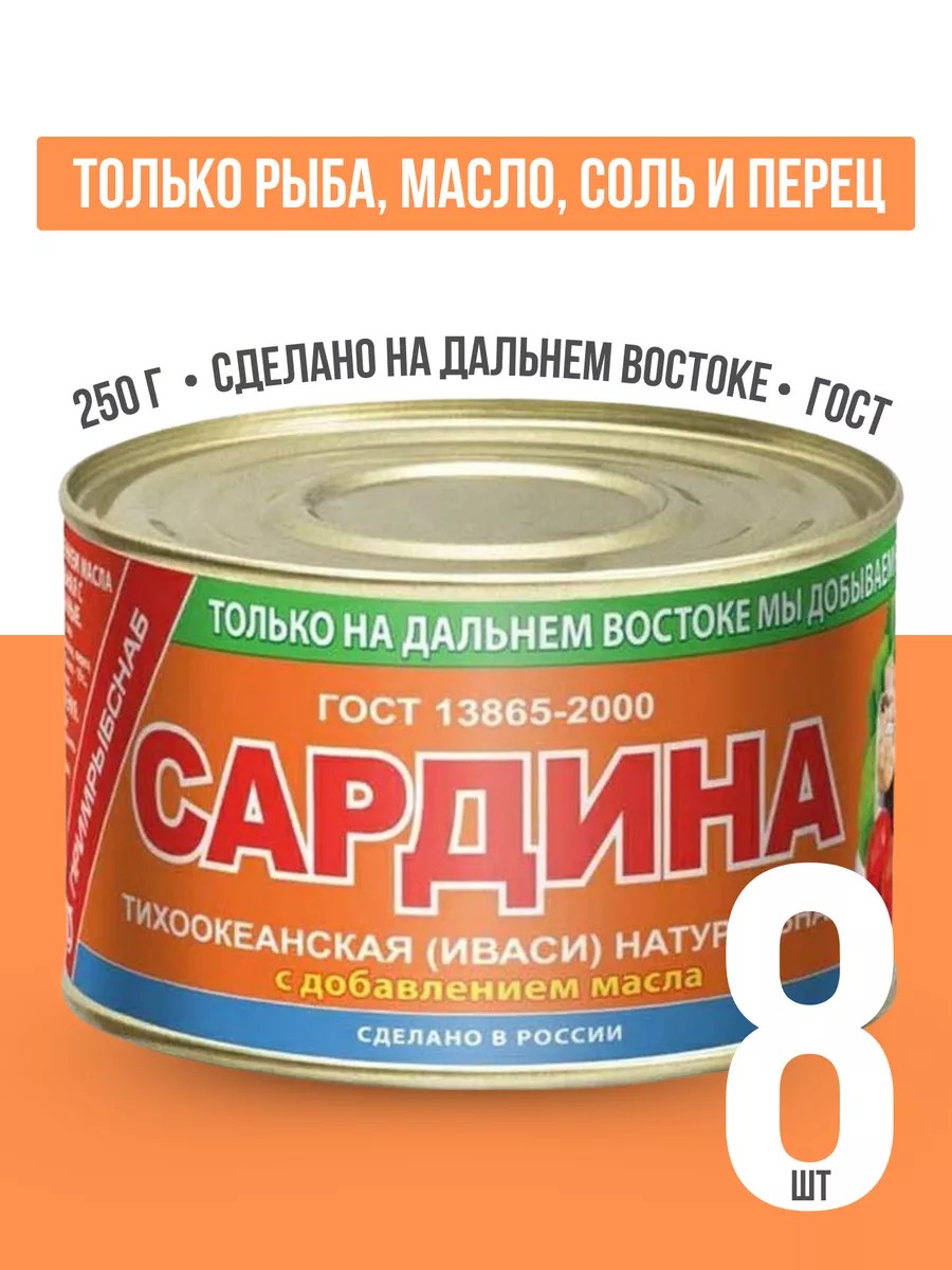 Примрыбснаб Консервы сардина (иваси) натуральная в масле 250 г, 8 шт