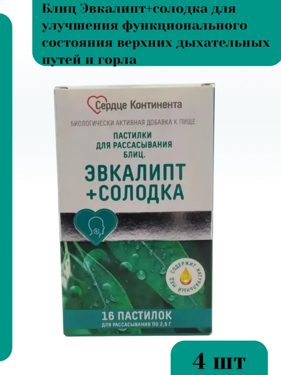 | Торговое наименование | Биологически активная добавка к пище «Блиц. Эвкалипт+солодка», пастилки для рассасывания 2,5 г №1, №8 №10, №15, №16, №20, №24, №30, №40, №45, №50, №60, №100, №150, №200, №250 |