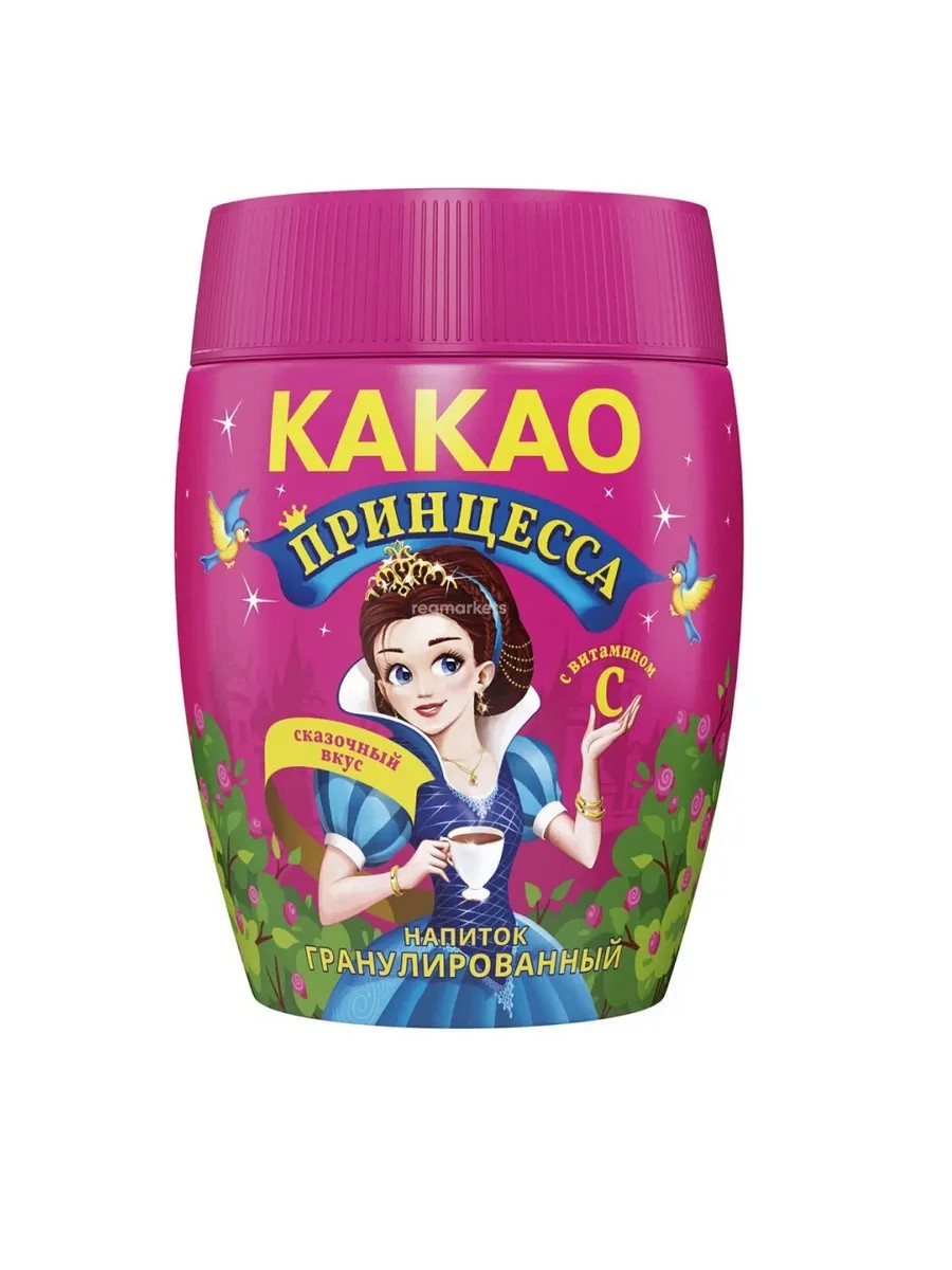 Принцесса, Какао растворимый гранулированный, 300г. Улучшает настроение и поднимает иммунитет благодаря содержанию витамина C. Шоколадный напиток обладает ярким и насыщенным вкусом. Не содержит искусственных красителей и консервантов, без гмо. В составе какао порошок, изготовленный из какао-бобов высшего качества. Растворимый какао подойдет для приготовления детского молочного напитка, горячего шоколада и выпечки. Какао не требует варки, а значит на приготовление вкусного напитка для детей вам не придется тратить много времени.