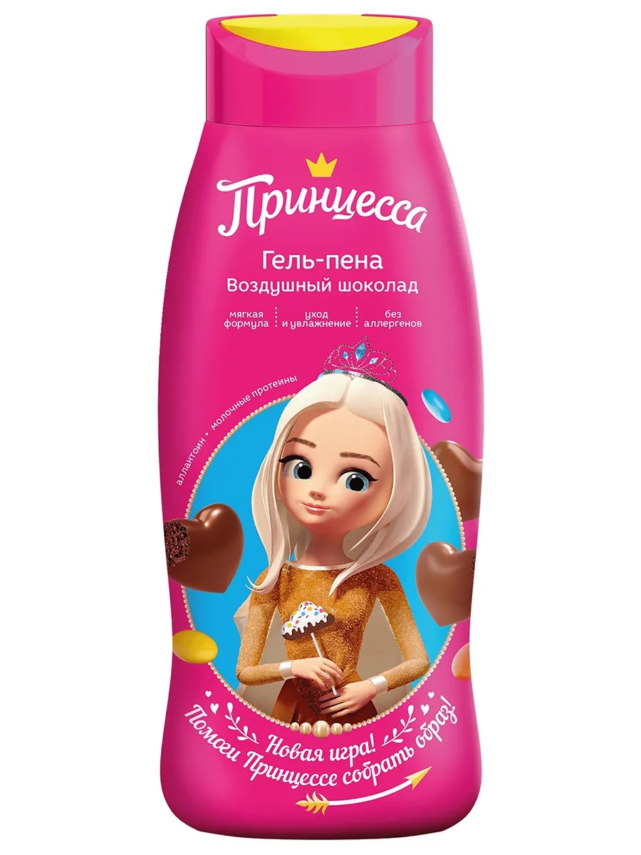 Принцесса Гель-пена Воздушный шоколад 400мл. Важность правильного ухода за детской кожей сложно переоценить. Средства по уходу за кожей от Принцессы — это сочетание мягкого очищения, питания и увлажнения, это целый мир ароматов и ощущений! Как здорово, когда в одном продукте сочетается мягкий состав, адаптированный под особенности детской кожи, и целое море ароматного удовольствия! Настоящим сладкоежкам посвящается! Невероятно вкусный и воздушный! Гель-пена - просто незаменимое средство для бережного ухода и мягкого очищения детской кожи, делает ее гладкой и бархатистой, а шоколадный аромат придает бодрость и солнечное настроение.