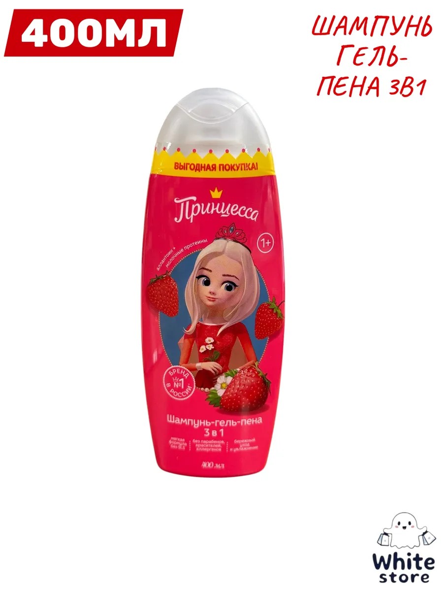 Шампунь-гель-пена 3 в 1 "Принцесса" – универсальное средство для купания детей от 1 года. Обеспечивает бережный уход и увлажнение. Мягкая формула без SLS, парабенов, красителей, аллергенов. Перед применением ознакомьтесь с инструкцией и мерами предосторожности на упаковке. Объём: 400 мл.