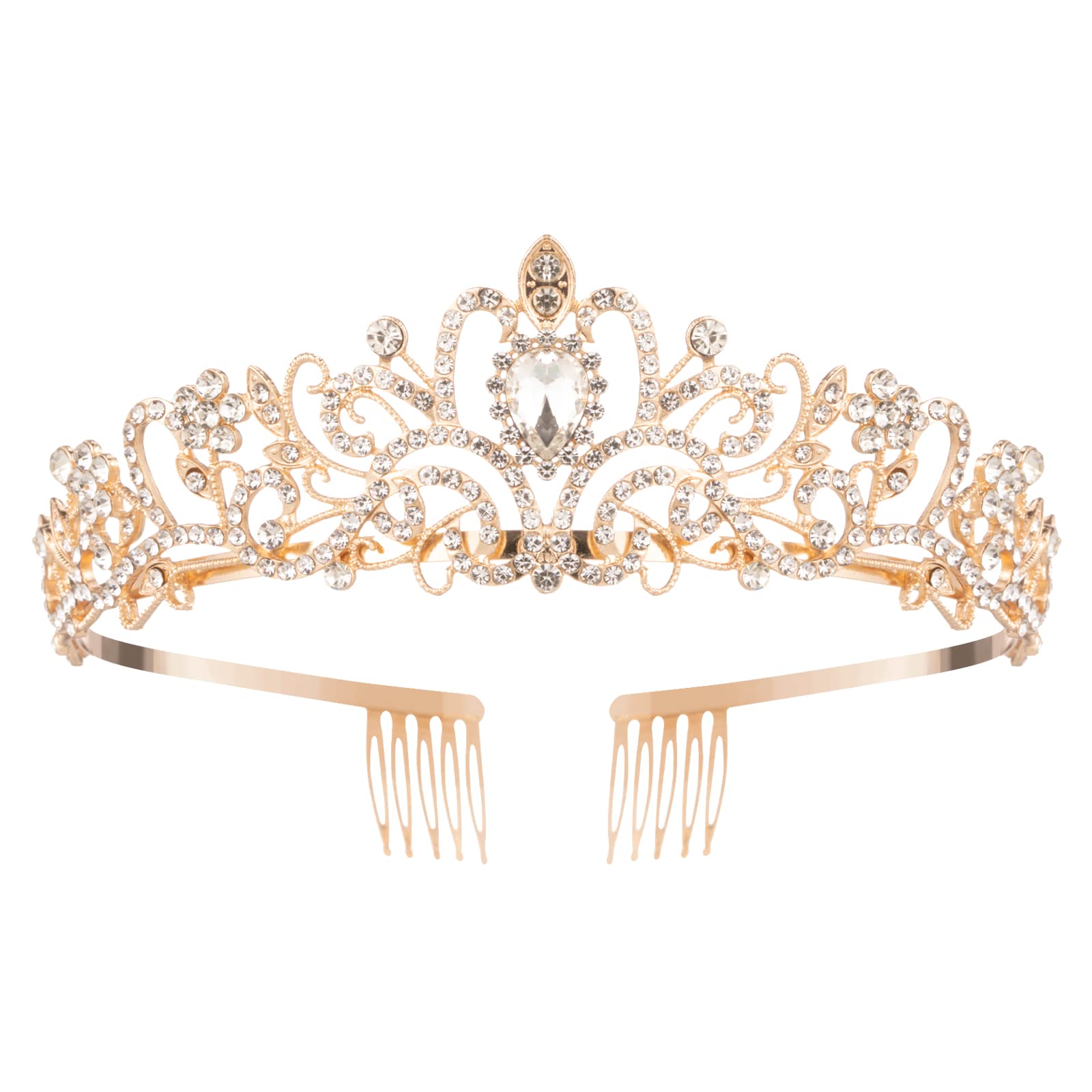 Princess Crown for Women, Crystal Queen Tiaras for Girls Bridal Hair Accessories Gifts for Birthday Wedding Prom, Bridal Party, Pageant, Halloween Christmas Costume (Gold (Pack of 1))