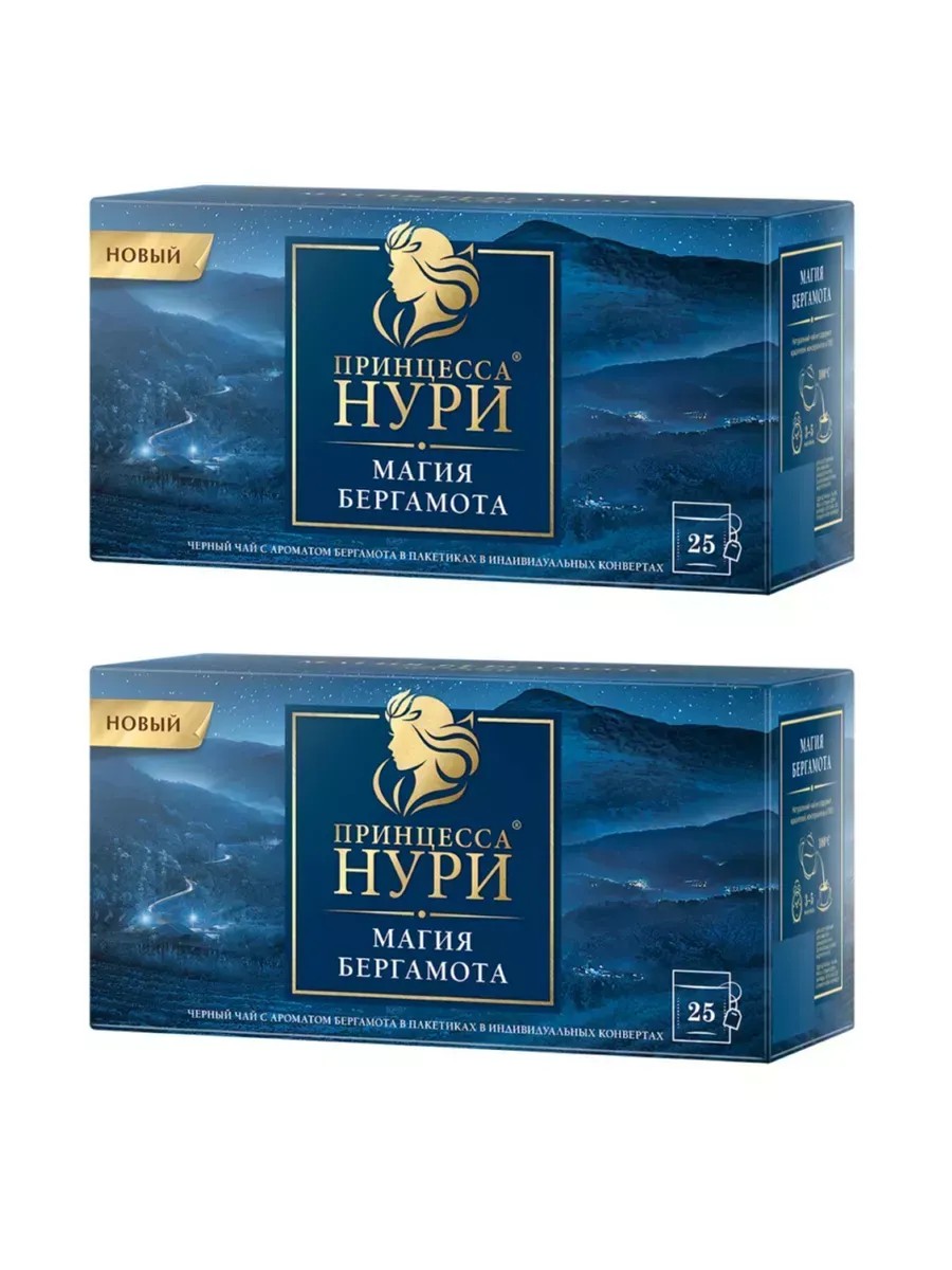 Принцесса НУРИ Чай черный Магия Бергамота, 2 уп по 25 пакетиков