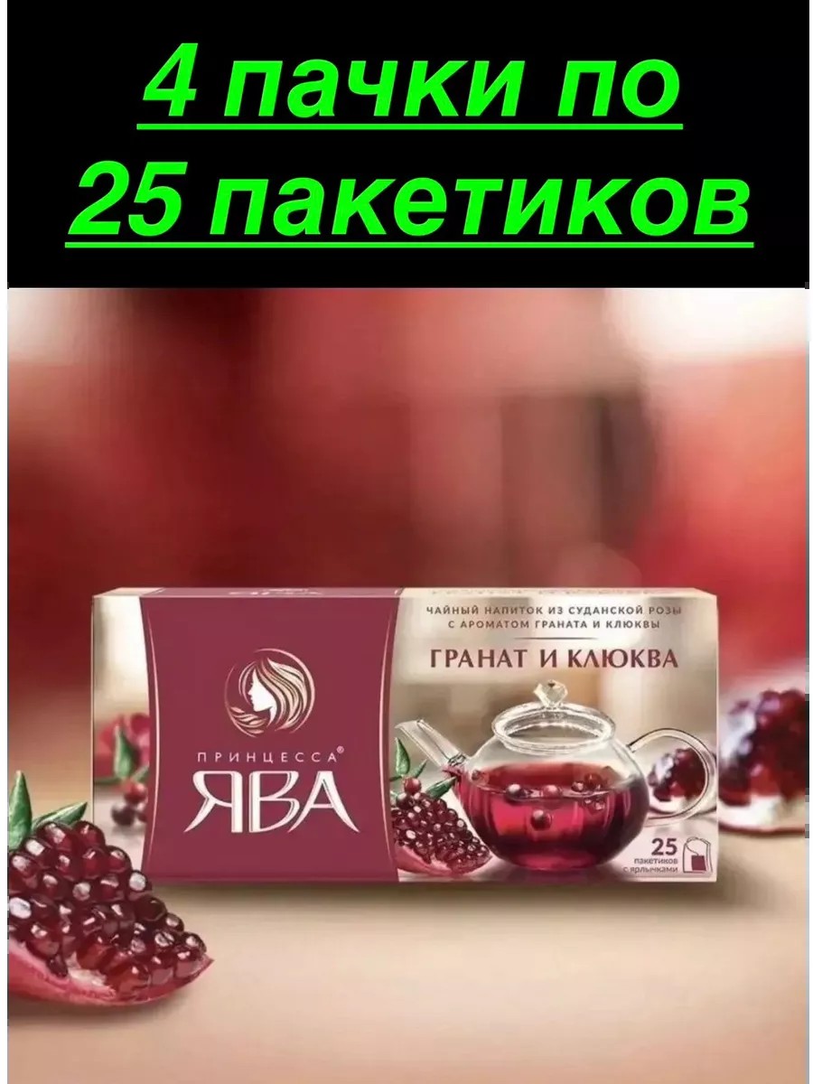 Принцесса Ява Чайный напиток в пакетиках Гранат и клюква, 4 пачки