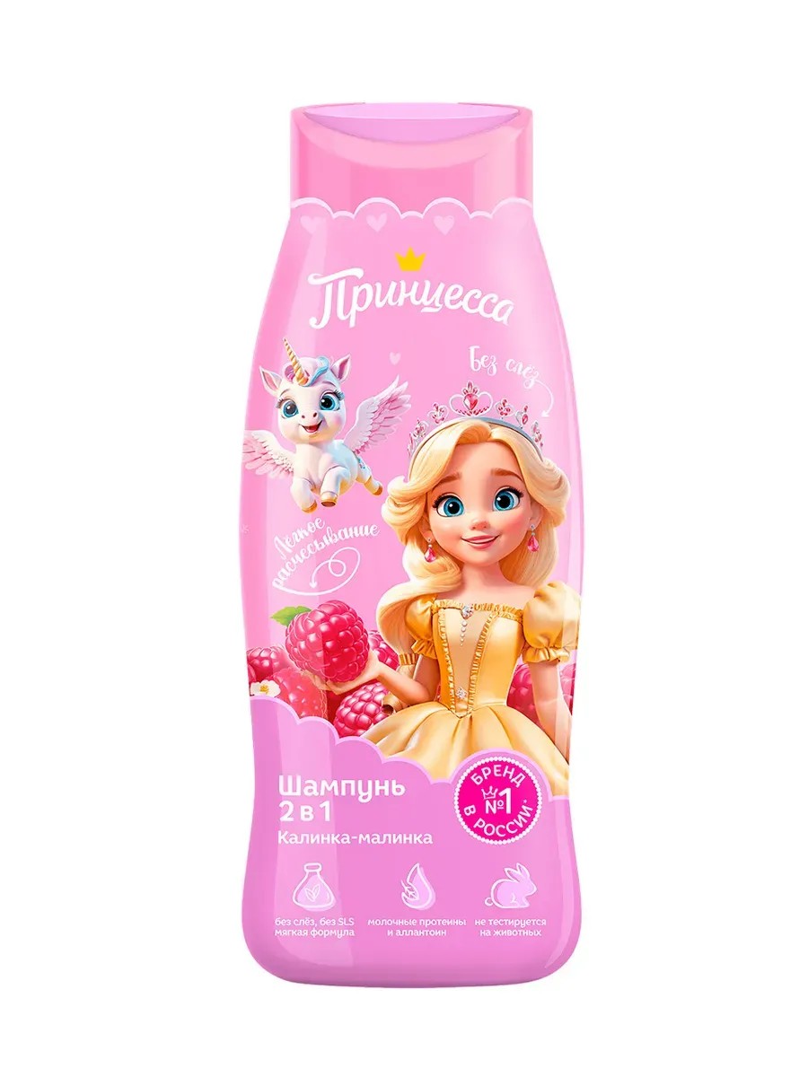 ПРИНЦЕССА Шампунь 400 мл 2в1 Калинка-Малинка. Шампунь – важная часть при заботе о волосах, особенно склонных к ломкости и сухости. Принцесса предлагает бережный уход за чувствительной кожей головы и волосами. Шампунь успокаивает чувствительную кожу головы, делает волосы послушными, придает им блеск. Кондиционер придаст объем тонким волосам, подчеркнув природную красоту юной Принцессы.