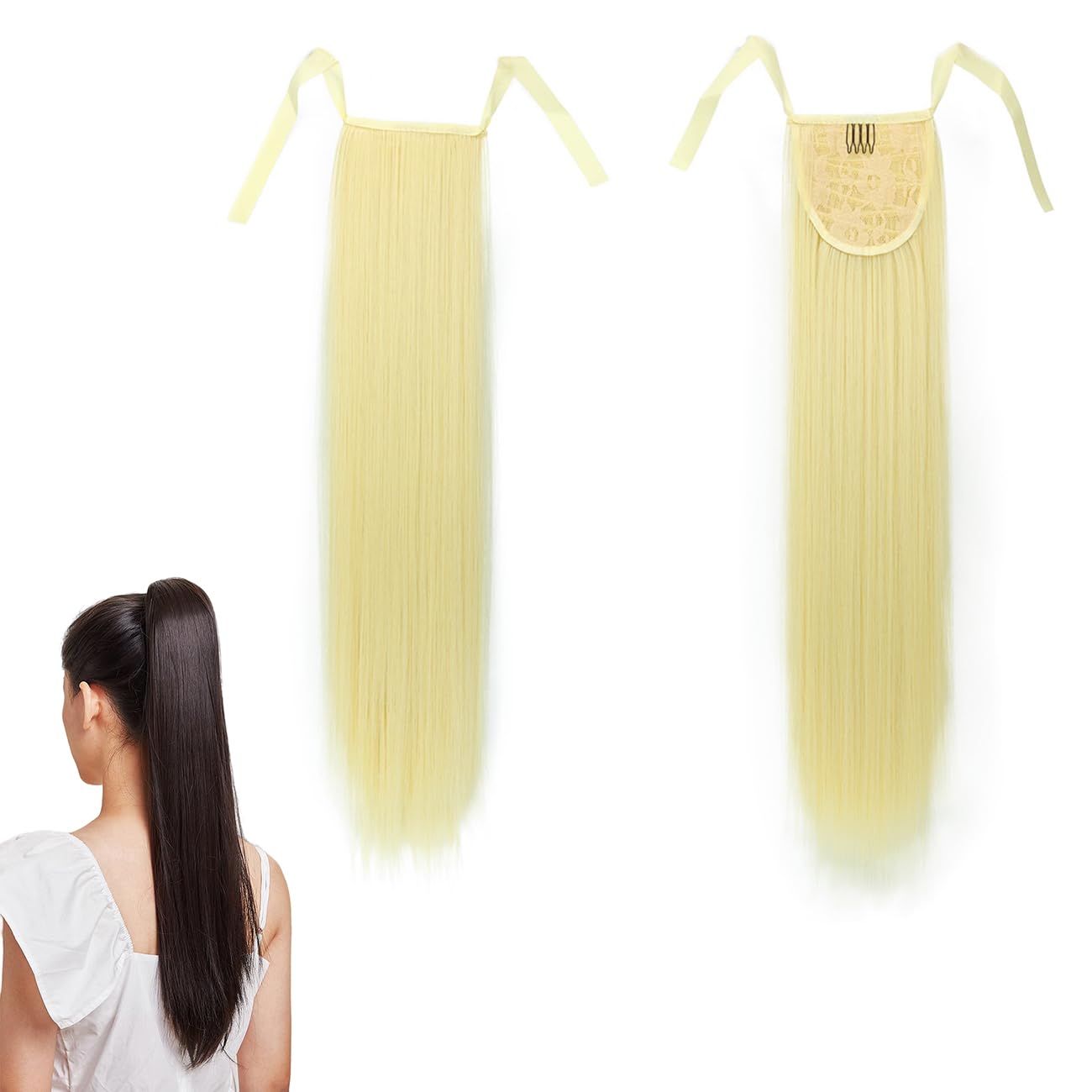 prinfantasy Long Straight Wrap Around Ponytail Hair Extension Wrap Around Synthetic Clip in Hairpiece for Woman and Girls Bright Blonde Wig, GBMW043