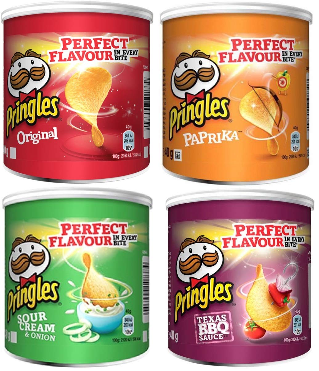 4 types of squeezable chips: Original - Paprika - Sour Cream Onion - Texas BBQ Sauce. You will receive 12 packs of 40g per variety. INGREDIENTS Potato puree, vegetable oils (sunflower, palm, corn), in varying weights, wheat flour, corn flour, rice flour, barbecue spice mix (sugar, lactose {milk}, table salt, onion powder, flavor enhancer {monosodium glutamate}, disodium ribonucleotide}, tomato powder, cardamom powder, yeast extract, smoke flavorings, locust bean gum, acidity regulator {sodium diacetate}, acidifiers {malic acid, citric acid}, garlic powder, sunflower oil, corn starch, color {paprika extract}, maltodextrin, emulsifier (E471), salt, Norbixin color (Annat)) MANUFACTURER'S DETAILS WMB Pringles BVBA, Eggestraat 1, 2800, Mechelen, BE See morePring les Mix Paquet (48 x 40 g) 4 variétés de pringles différentesDESCRIPTION DU PRODUIT DESCRIPTION DU PRODUIT 4 types de jetons de pressage : original - Paprika - Sour Cream Onion - Texas BBQ sauce. Vous recevrez 12 paquets de 40 g par variété. INGRÉDIENTS purée de pommes de terre, huiles végétales (tournesol, palme, maïs), en poids variable, farine de blé, farine de maïs, farine de riz, mélange d'épices pour barbecue (sucre, lactose {lait}, sel de table, poudre d'oignon, exhausteur de goût {glutamate monosodium}, ribonucléotide disodium}, Tom. poudre d'aten, carton. poudre de rika, extrait de levure, arômes de fumée, poudre de caroube, régulateur d'acidité {diacétate de sodium}, acidifiant {acide malique, acide citrique}, poudre d'ail, huile de tournesol, amidon de maïs, colorant {extrait de paprika}, maltodextrine, émulsifiant (E471), sel, Colorant (Annat) à Norbixin) COORDONNÉES DU FABRICANT WMB Pringles BVBA, Eggestraat 1, 2800, Mechelen, BE Voir plus