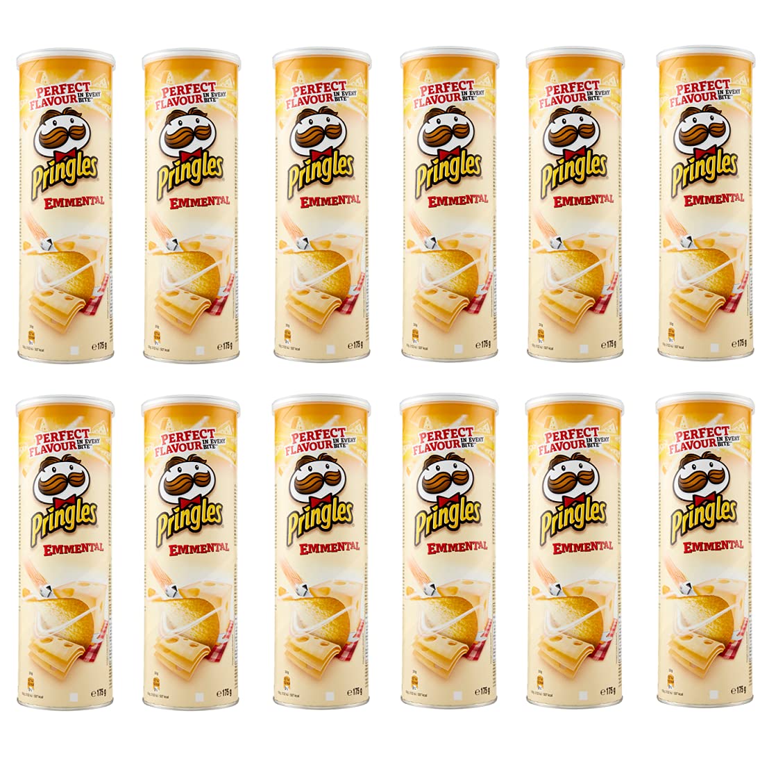 Pringles Emmental Lot de 12 boîtes de friandises à grignoter avec puces de goût Emmental Kase 175 g