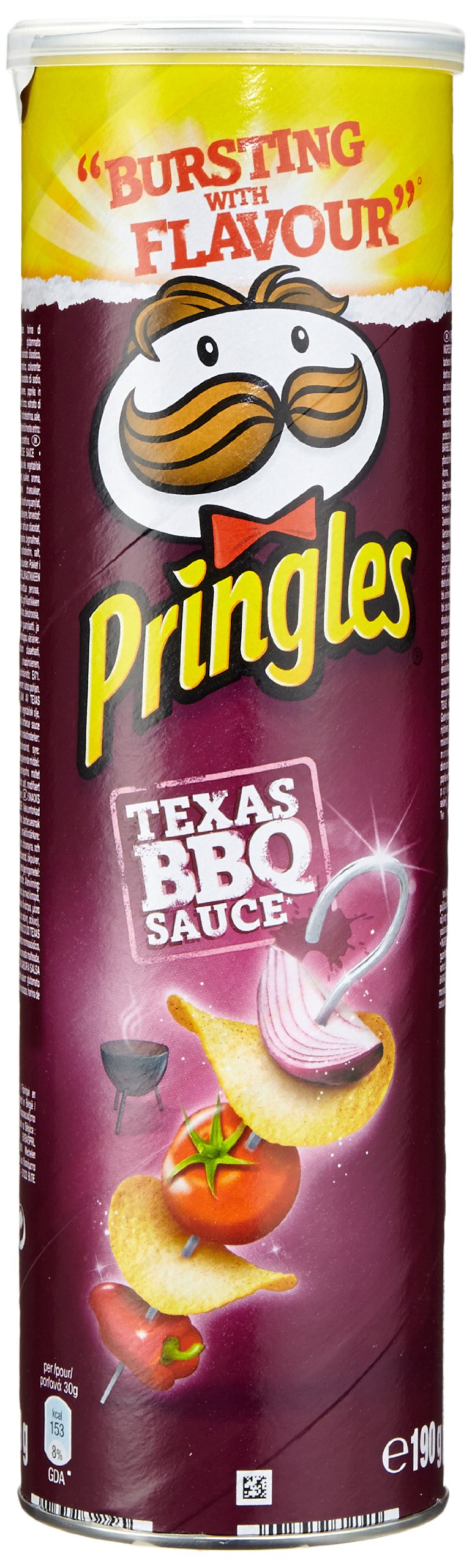 Pringles Texas BBQ Sauce XXL 190g Pack Texas-style pastry. Data taken from the manufacturer's description INGREDIENTS Potato puree powder, vegetable oil, vegetable fat, rice flour, wheat flour, emulsifier: E 471, maltodextrin, sugar, flavoring, smoke, spices, wheat flour, dextrose, flavor enhancers: monosodium glutamate, disodium guanylate and disodium dinate, acid: citric acid. Citric acid, color: pepper extract, acidity regulator: sodium diacetate, onion powder, tomato powder, pepper powder, barley flour, yeast extract, salt, table salt, modified rice starch. Vegan, vegetarian INSTRUCTIONS FOR USE Packaged in a protective atmosphere. See more