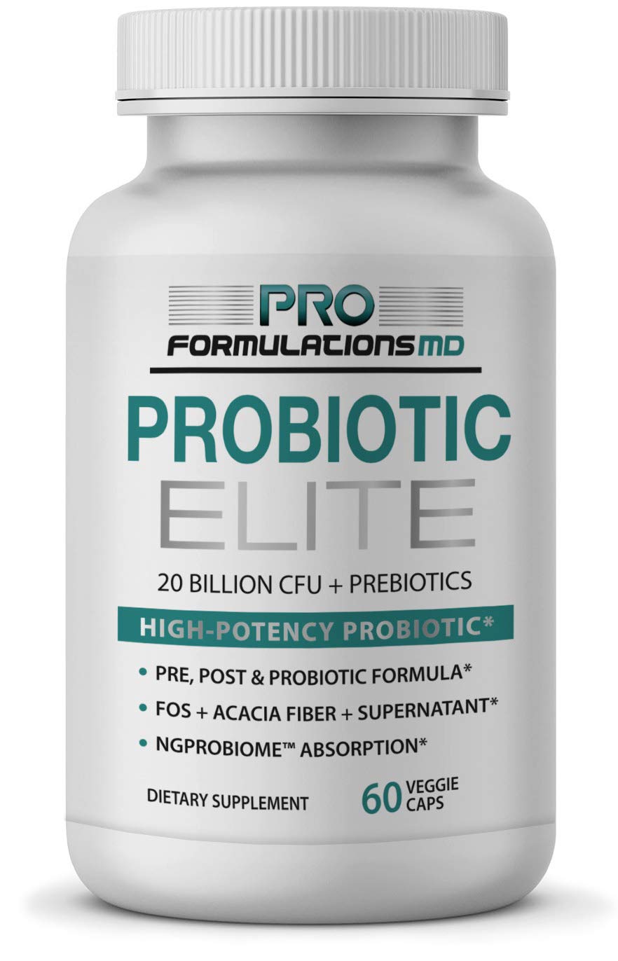 Pro Formulations MD Probiotic Elite Synbiotic with FOS + Supernatant 60 vcaps Pre Post & Probiotic Digestive Support with 20 Billion CFU FOS Acacia Fiber & Freeze Dried Culture Powder