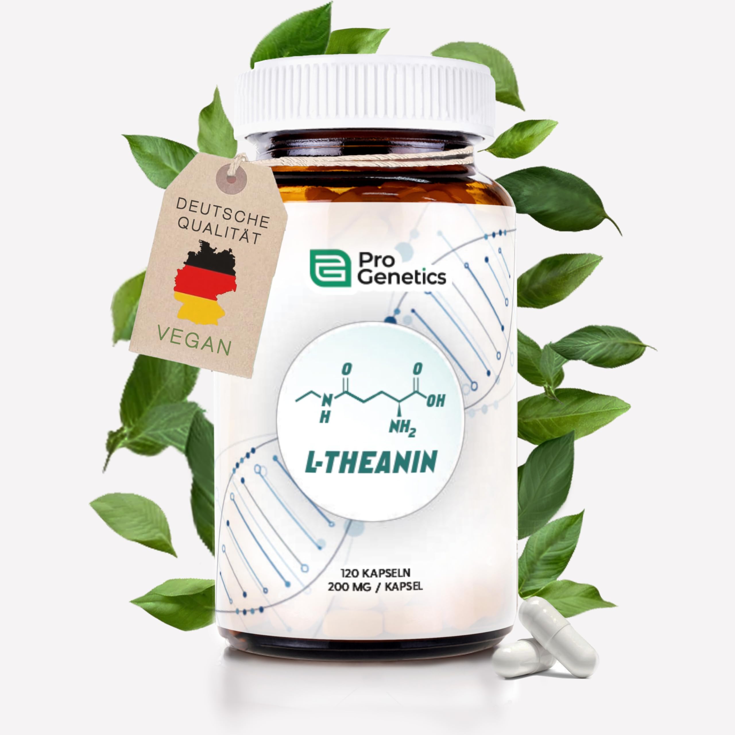Pro Genetics High-dose L-Theanine capsules: 200 mg / 120 capsules | maximum purity | concentration-relaxation-sleep | bottled and laboratory analysed in Germany | Amino acids