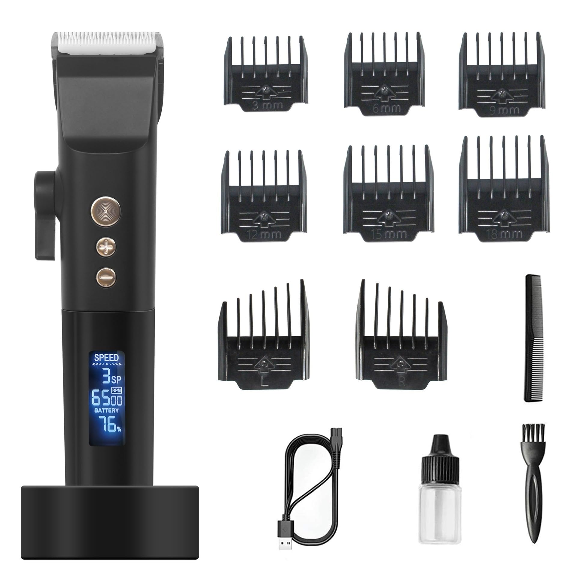 Pro Hair Clipper Hair Clipper Rechargeable Titanium Ceramic Blade Electric Pusher LCD Digital Hairdresser Suit for Men with Charging Stand