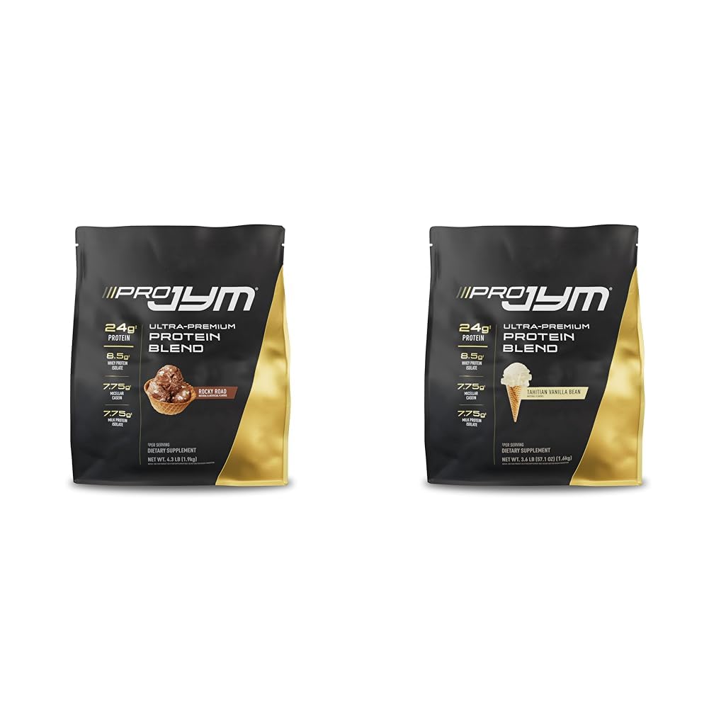 Pro JYM Protein Powder Blend with Whey Casein Milk & Egg Isolates - Rocky Road & Tahitian Vanilla Bean Flavors 4.3lb & 45 Servings