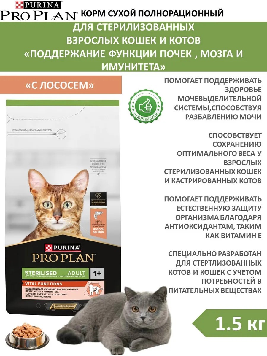 PRO PLAN Корм для взрослых стерилизованных кошек с лососем 1.5 кг