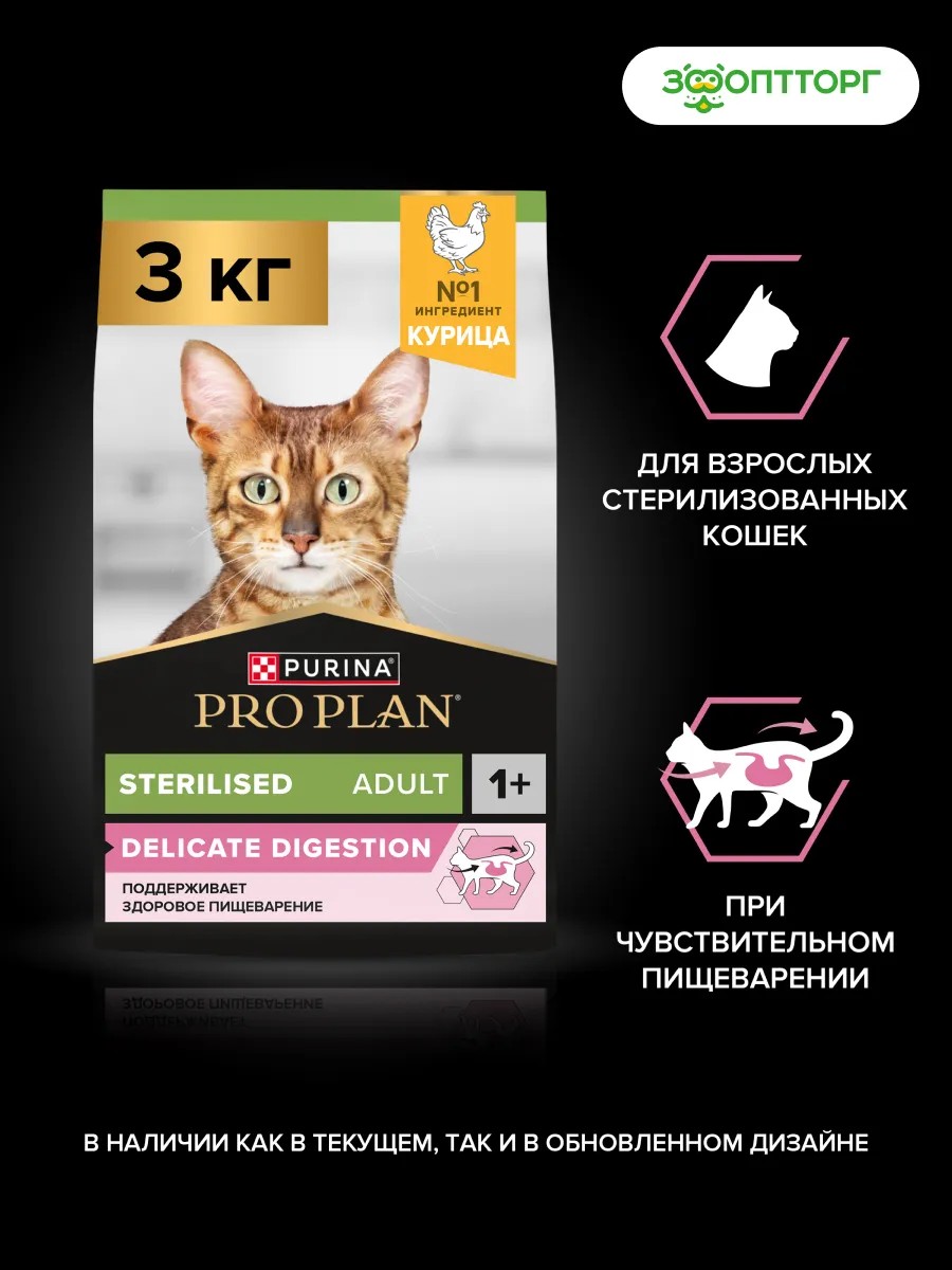 Pro Plan Корм для стерилизованных кошек DELICATE DIGESTION, 3 кг
