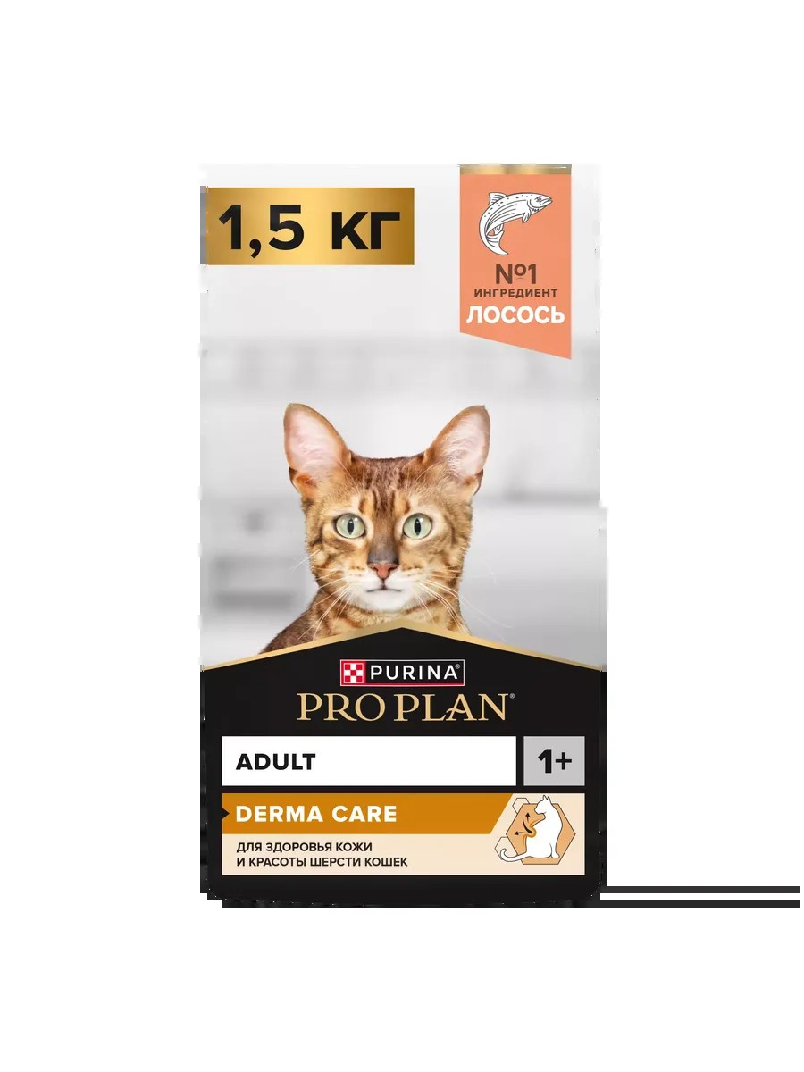 | Полное наименование товара | Сухой корм PRO PLAN DERMA CARE для кошек для здоровья кожи и красоты шерсти с лососем, 1.5 кг |