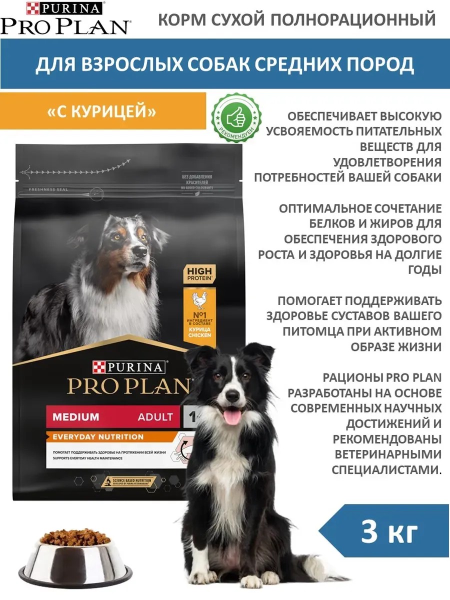 PRO PLAN Сухой корм Про План для взрослых собак средних пород с курицей 3 кг