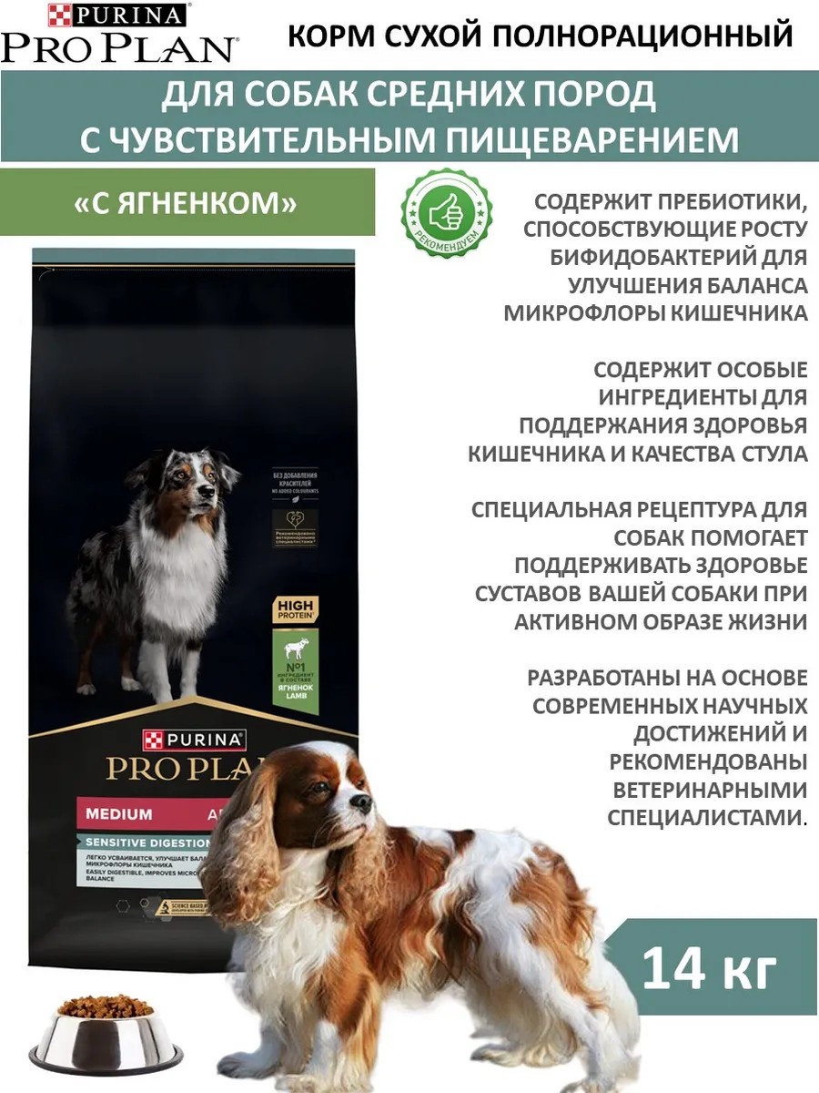 | Полное наименование товара | Сухой корм PRO PLAN SENSITIVE DIGESTION для взрослых собак средних пород с чувствительным пищеварением, с высоким содержанием ягненка |
