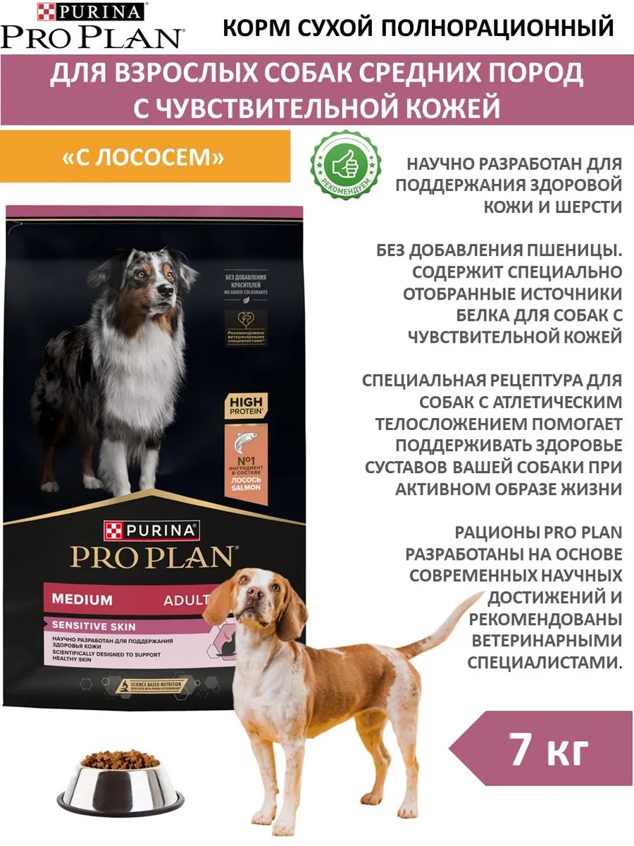 Изучая потребности собак на протяжении многих лет, команда квалифицированных ветеринарных специалистов и диетологов PURINA разработала сухой корм PRO PLAN Sensitive skin (для чувствительной кожи) — ежедневный рацион с высоким содержанием лосося для взрослых собак средних пород. Этот полнорационный корм сбалансирован по составу и помогает поддерживать здоровье чувствительной кожи.