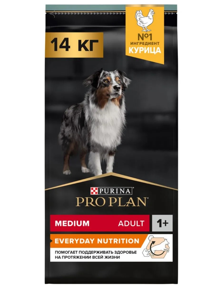 Корм сухой для взрослых собак средних пород Pro Plan Everyday Nutrition (ежедневный рацион) — это полюбившийся Pro Plan Opti Balance (Опти Баланс) с новым названием, но прежним составом и качеством.