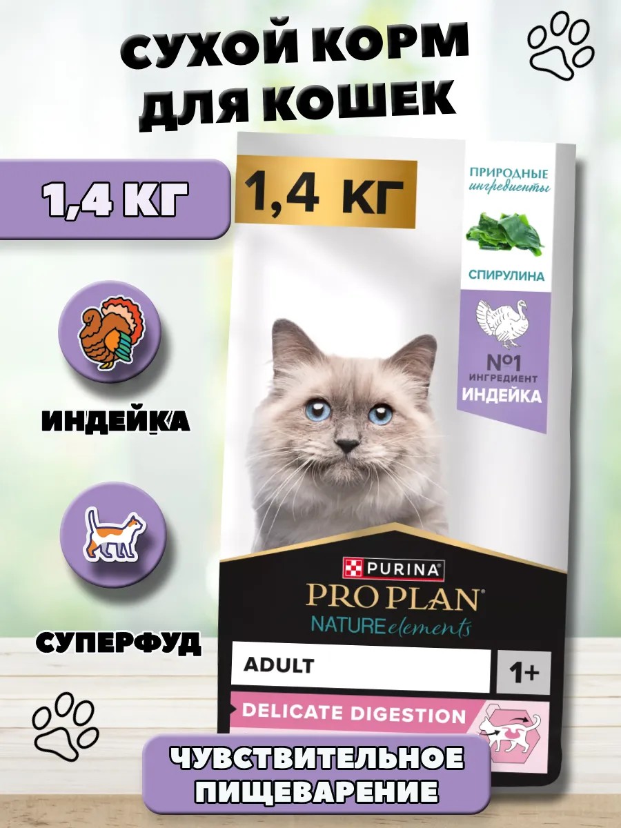 Сухой корм PRO PLAN Nature Elements DELICATE DIGESTION для кошек при чувствительном пищеварении с индейкой 1.4 кг.