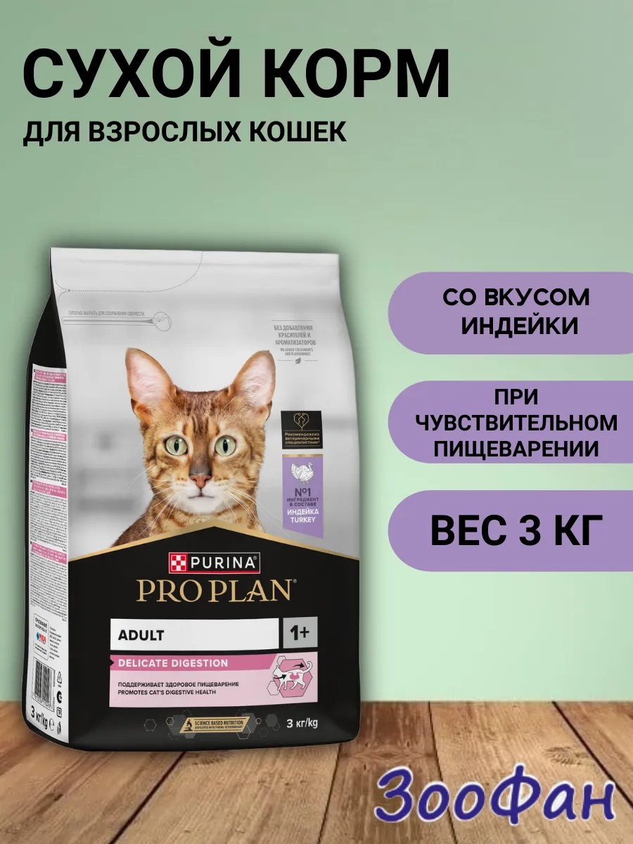 PRO PLAN Сухой корм для кошек чувствительное пищеварение индейка 3 кг