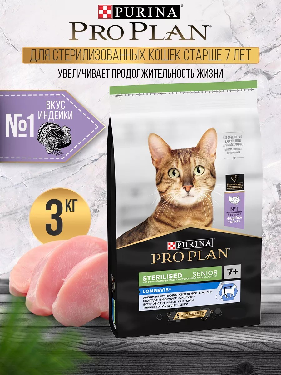 PRO PLAN Сухой корм для кошек Sterilised Senior 7+ индейка 3 кг