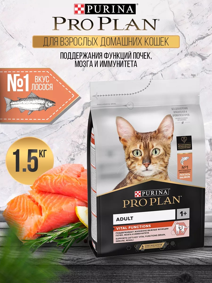PRO PLAN Сухой корм для кошек VITAL FUNCTIONS ADULT с лососем 1.5 кг