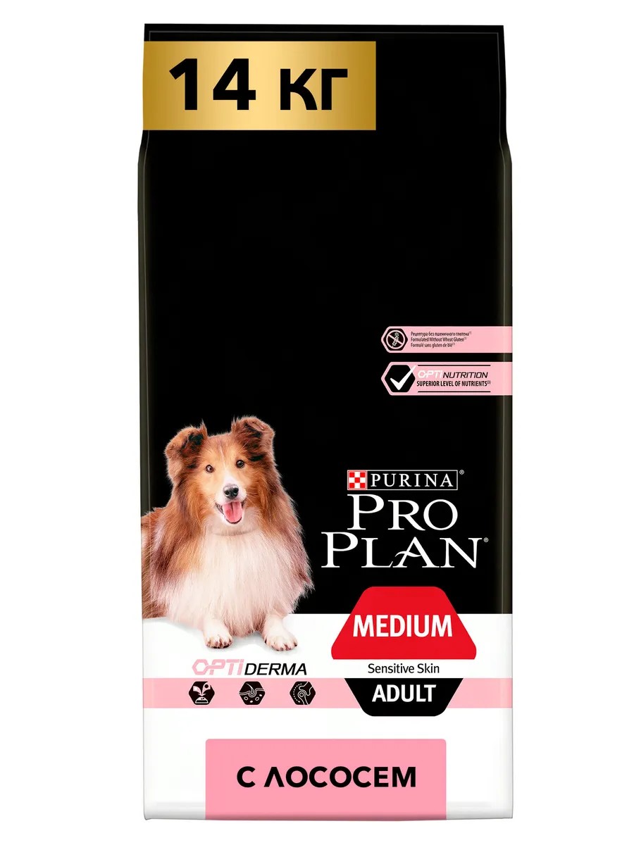 PRO PLAN Корм сухой для собак Medium Adult Optiderma, 14кг