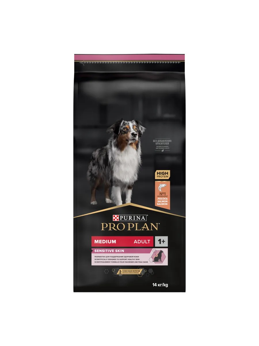 PRO PLAN Сухой корм для собак средних пород для кожи с лососем, 14 кг
