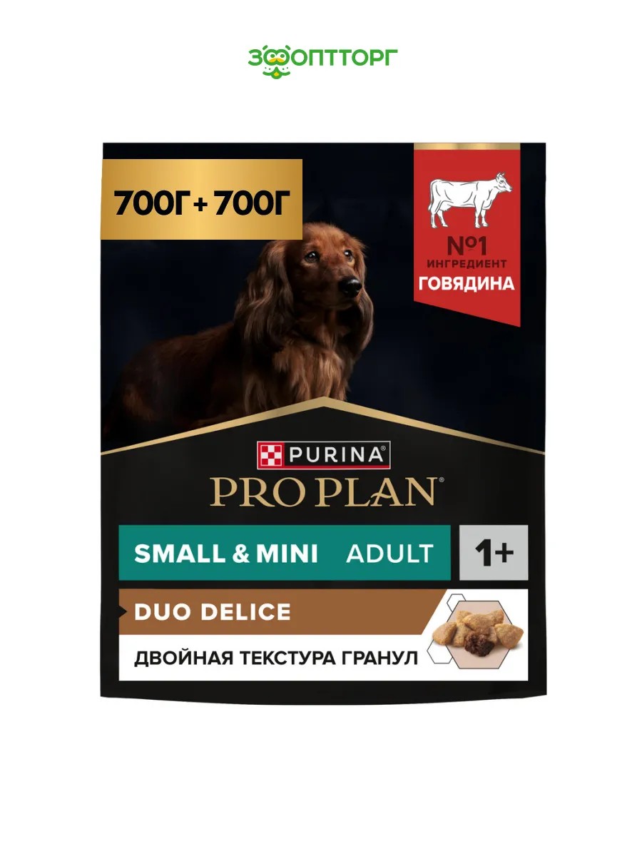 | Комплектация | PRO PLAN DUO DELICE сухой корм для собак мелких пород Говядина, 700 г х 2 шт |