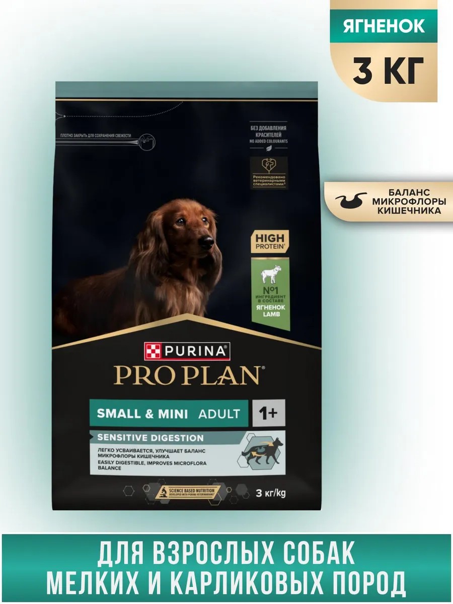 | Комплектация | Сухой корм PRO PLAN SENSITIVE DIGESTION для взрослых собак мелких и карликовых пород с чувствительным пищеварением, с высоким содержанием ягненка, 3 кг - 1 шт. |