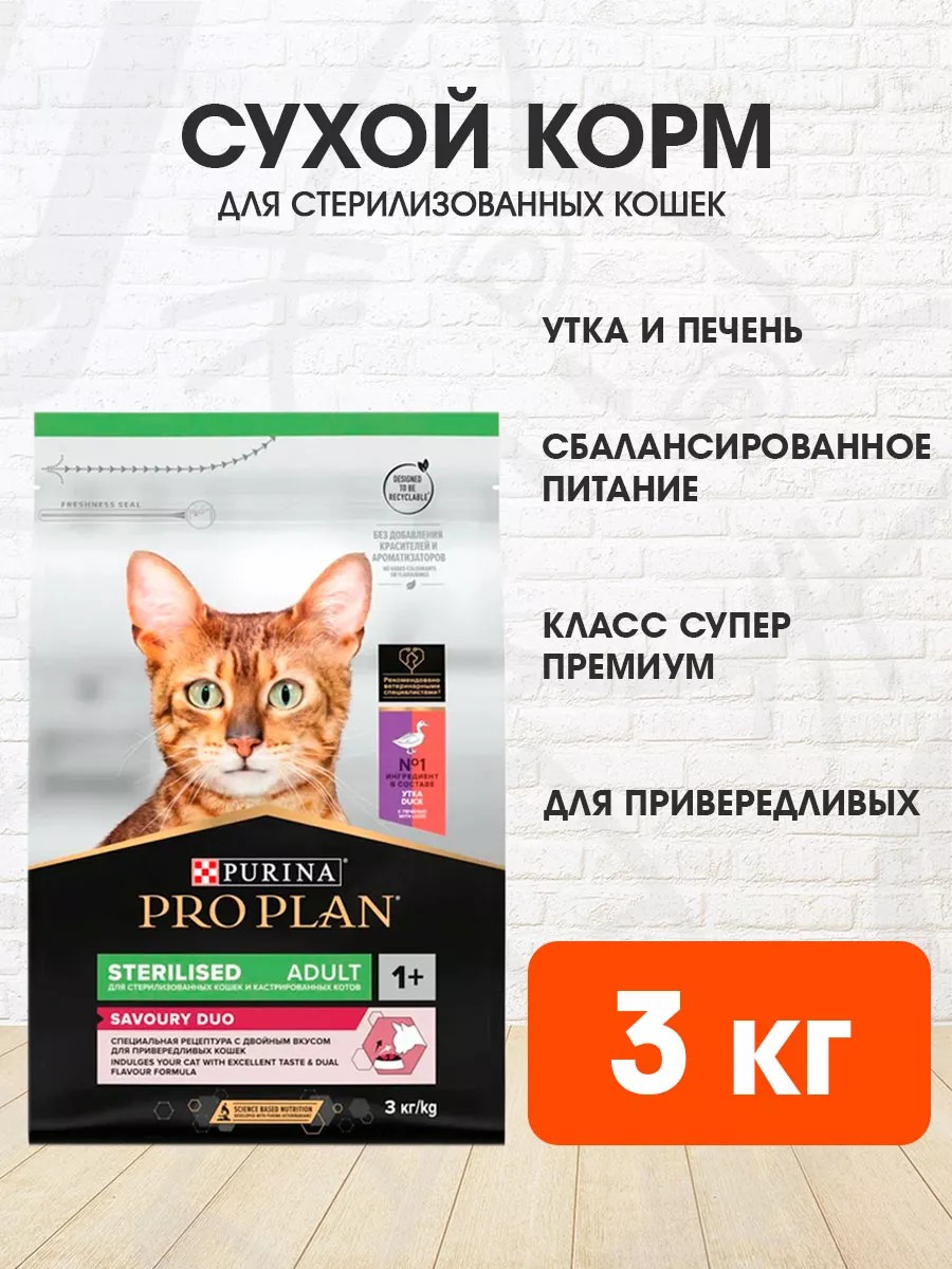 PRO PLAN Корм сухой для привередливых стерилизованных кошек утка 3 кг