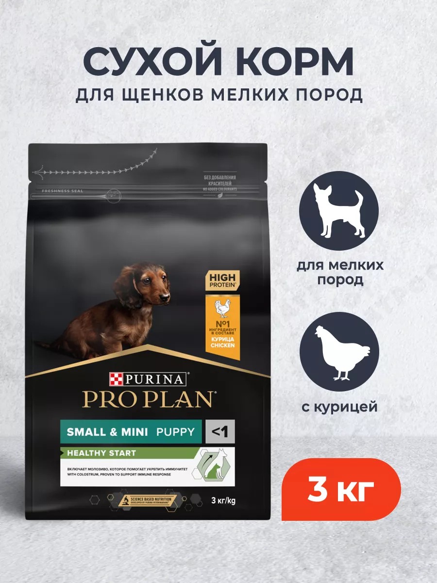 Изучая потребности щенков на протяжении многих лет, команда квалифицированных ветеринарных специалистов и диетологов PURINA разработала сухой корм PRO PLAN Healthy start (здоровый старт) для щенков с 6 недель - ежедневный рацион с высоким содержанием курицы для щенков мелких и карликовых пород. Этот полнорационный корм сбалансирован по составу.