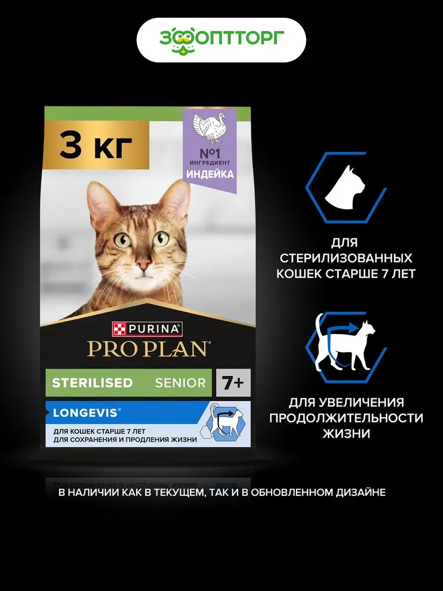 Pro Plan Сухой корм для стерилизованных кошек 7+ , Индейка, 3 кг
