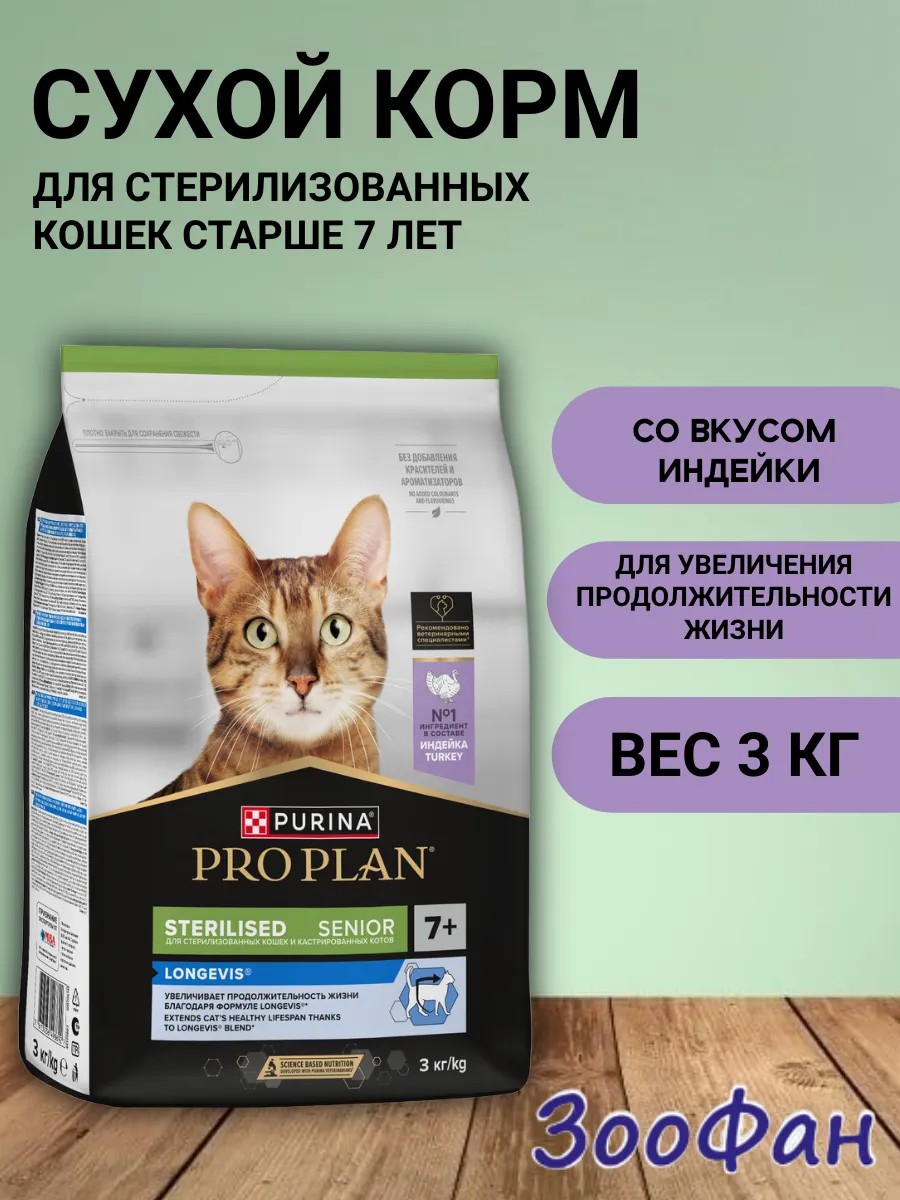 PRO PLAN Сухой корм для стерилизованных кошек 7+ с индейкой 3кг